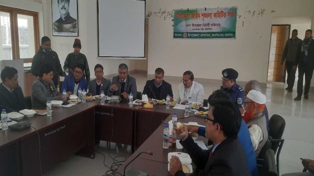বৃহস্পতিবার সকালে সদর পরিষদ সম্মেলন কক্ষে আইন শৃঙ্খলা কমিটির সভায় সভাপতিত্ব করেন সদর উপজেলা নির্বাহী অফিসার ইফতেখার ইউনুস।এ-সময় আইন শৃঙ্খলা কমিটির সভায় উপস্থিত ছিলেন সদর উপজেলা পরিষদ চেয়ারম্যান আশরাফ হোসাইন,ভাইস চেয়ারম্যান মোস্তাফিজুর রহমান শাহিন,কোতোয়ালী মডেল থানার ওসি মারফত আলী,সিরতা ইউনিয়নের চেয়ারম্যান আবু সাইদ,মটর মালিক সমিতির সভাপতি মমতাজ উদ্দিন মন্তা,নির্বাচন অফিসার উত্তম কুমার দাস,আওয়ামীলীগ নেতা আব্দুস সালাম সরকার প্রমুখ উপস্থিত ছিলেন।