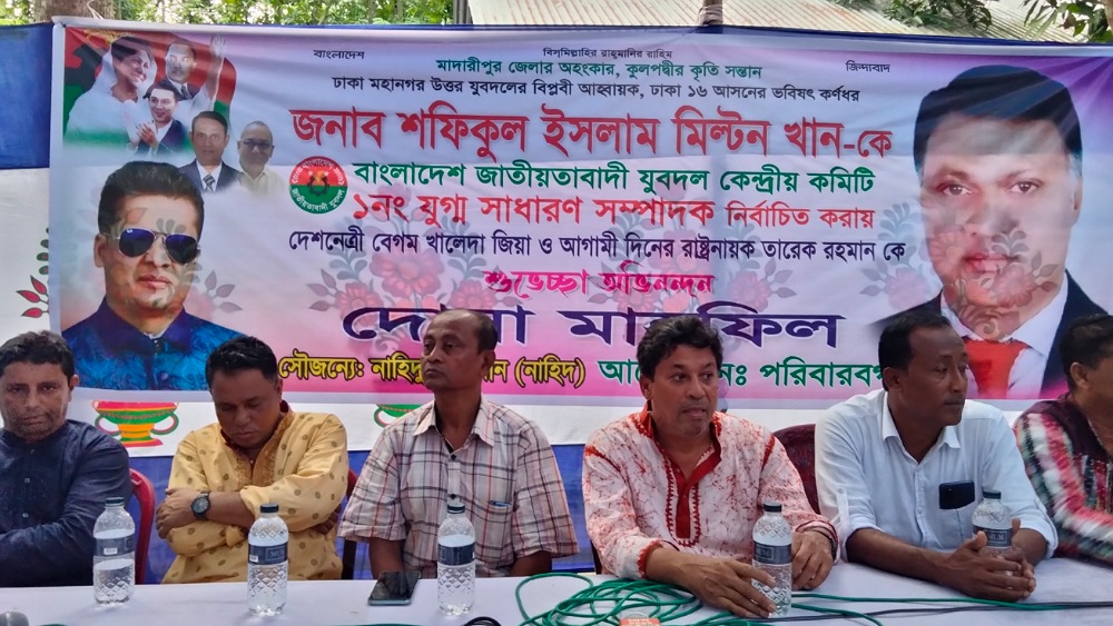 মাদারীপুরের সন্তান শফিকুল ইসলাম মিল্টন খান যুবদল কেন্দ্রীয় সংসদের ১নং যুগ্ম সাধারণ সম্পাদক নির্বাচিত হওয়ায় দেশনেত্রী বেগম খালেদাজিয়া ও আগামীর রাষ্ট্রনায়ক তারেক রহমান কে শুভেচ্ছাও অভিনন্দন জানিয়ে দোয়া মাহফিল অনুষ্ঠিত হয়েছে।